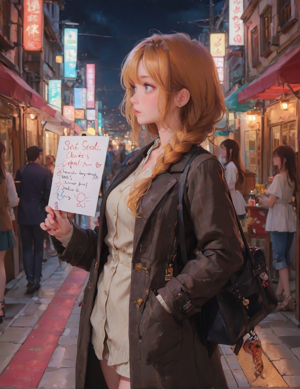 Color street sketch vignette. They hold a sign. Text: "Artisttic Realism". The sign reads: "Artisttic Realism". sbartstcrlsmCE_style <lora:TextTitle01a_CE_XL_300-OT:0.6> texttitle. <lora:SBAArtisticRealism01_CE_XL_200-OT:0.5>