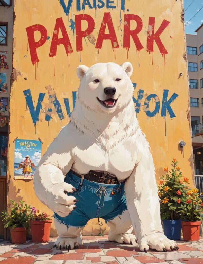 Travel poster. "Alaska Vacation". Polar Bear. vntgtrvlpstrCE style, (no human:1.2) <lora:VintageTravelPoster01a_CE_SDXL_64x32x120x2bOT:1.2>