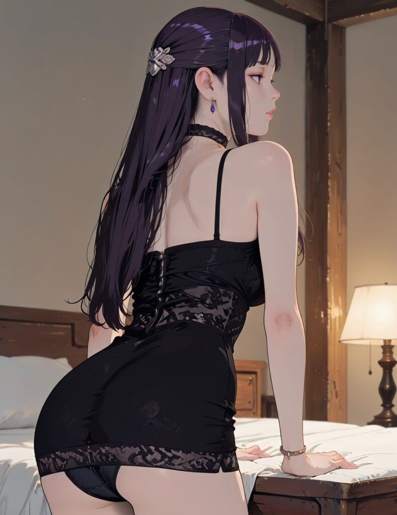 | Trigger: | mai_black_dress,choker,black_dress,anima_print,lace_trim, black_panties |