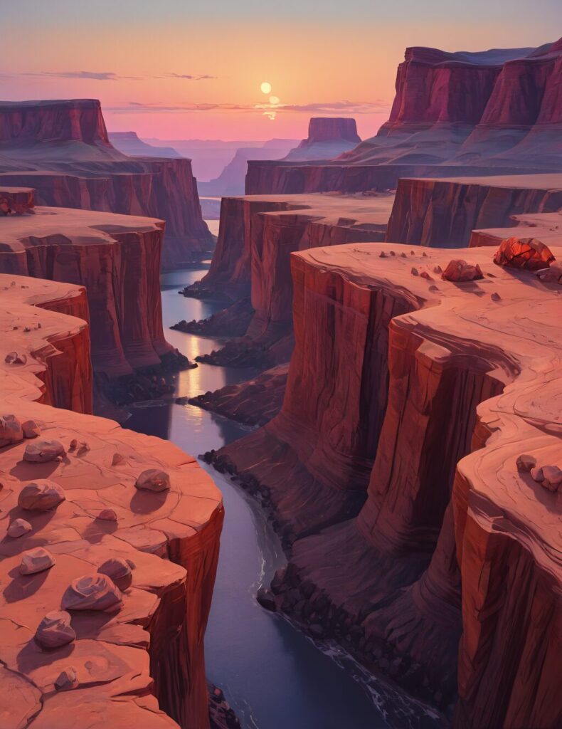 (((masterpiece))), (((ultra-detailed))), breathtaking view of the (Grand Canyon) at sunset, its (towering red rock cliffs) glowing with warm golden light. The canyon stretches infinitely, with dramatic shadows cast across the layered stone formations. A glowing sky painted in radiant orange, pink, and purple hues, with the Colorado River winding below. (cinematic lighting), (sharp focus), (8k photorealistic landscape), atmospheric depth, immersive scale. psychedelic-09 <lora:Psychedelic-09_No_Faces_PONY:1>