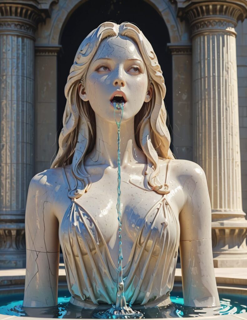 marble statue of 1girl,solo,fountain,water from mouth,NM_Antiquity_statue, statue,realistic,<lora:NM_Antiquity_statue_ill:1>