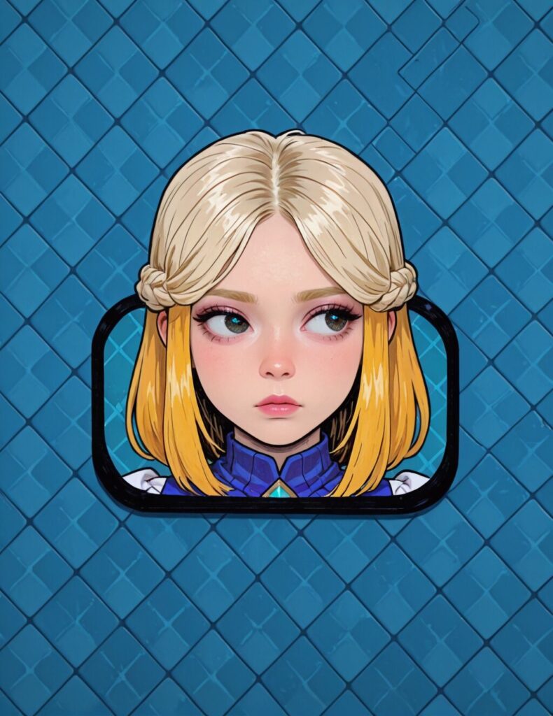 Emoteclash,frame,outside the frame, checkered background, argyle background,inside on the frame, <lora:Emote:1>, 1 girl, blond hair, diamond,