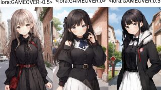 Type:LORAModel:SD 1.5ファイル名:GAMEOVER.safetensorsTrigger:Gameover 1 cute girl, <lora:GAMEOVER:-0.5>
